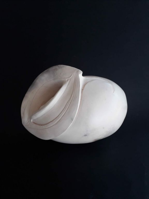 Image: Rhonda Halliday, "Hine-Ahu-One" (2014), Burnished and smoke-fired uku (clay). This artwork is featured in the M/other exhibition, on show at Te Kōputu until 7 August 2019.